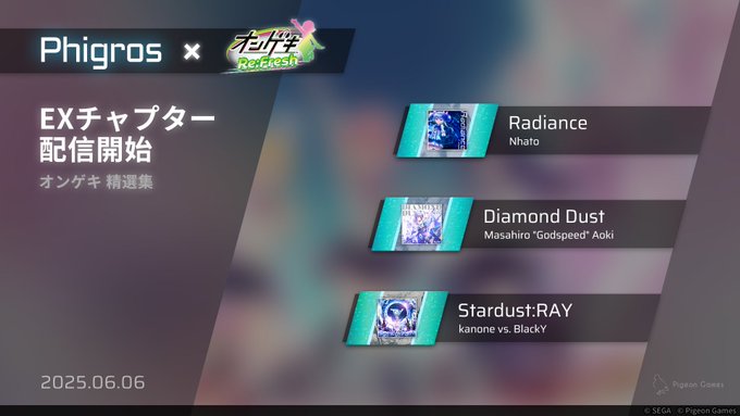 サムネイル画像 Phigros×オンゲキCollaboration告知より https://x.com/Phigros_PGS_JP/status/1930912562981257584